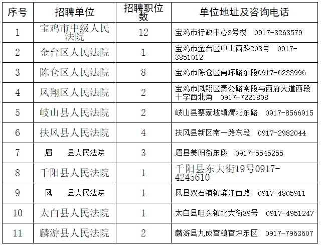 《寶雞法院2023年面向社會公開招聘聘用制書記員職位表》